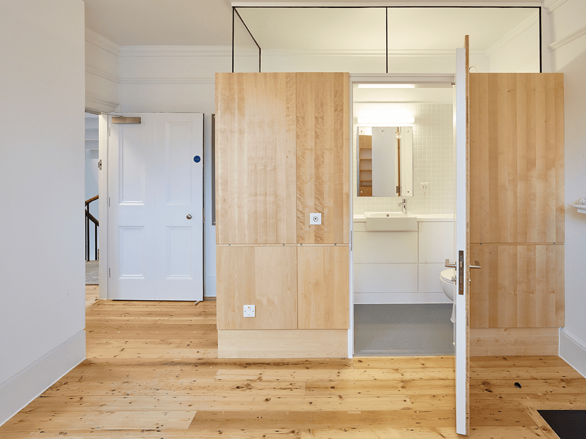 First was to avoid vapour barriers and phenolic foam, instead opting for wood fibre insulation board and no vapour barrier. This better allowed moisture to move through the wall, reducing any risk of build-up and thus better reflecting the existing condition.