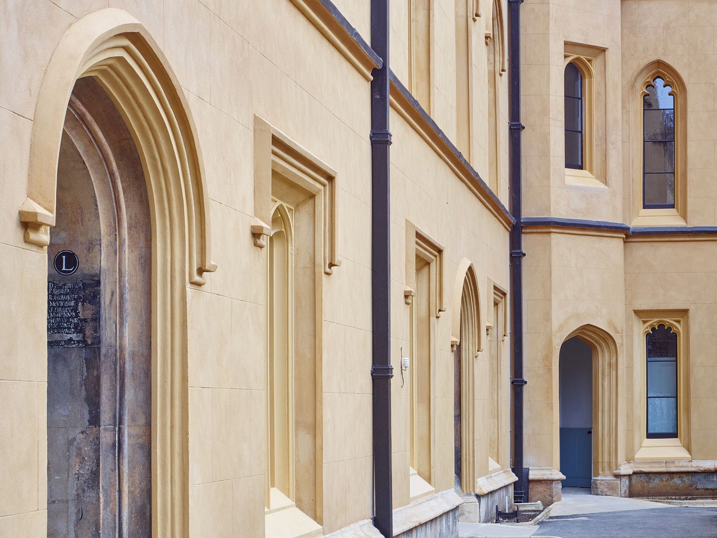 New Court is a four-storey, neo-Gothic building which contained student study bedrooms, offices and teaching spaces arranged around a central court. The refurbishment took place a few years ago and comprised extensive refurbishment of the interior spaces, with new service installations and renewed facades.